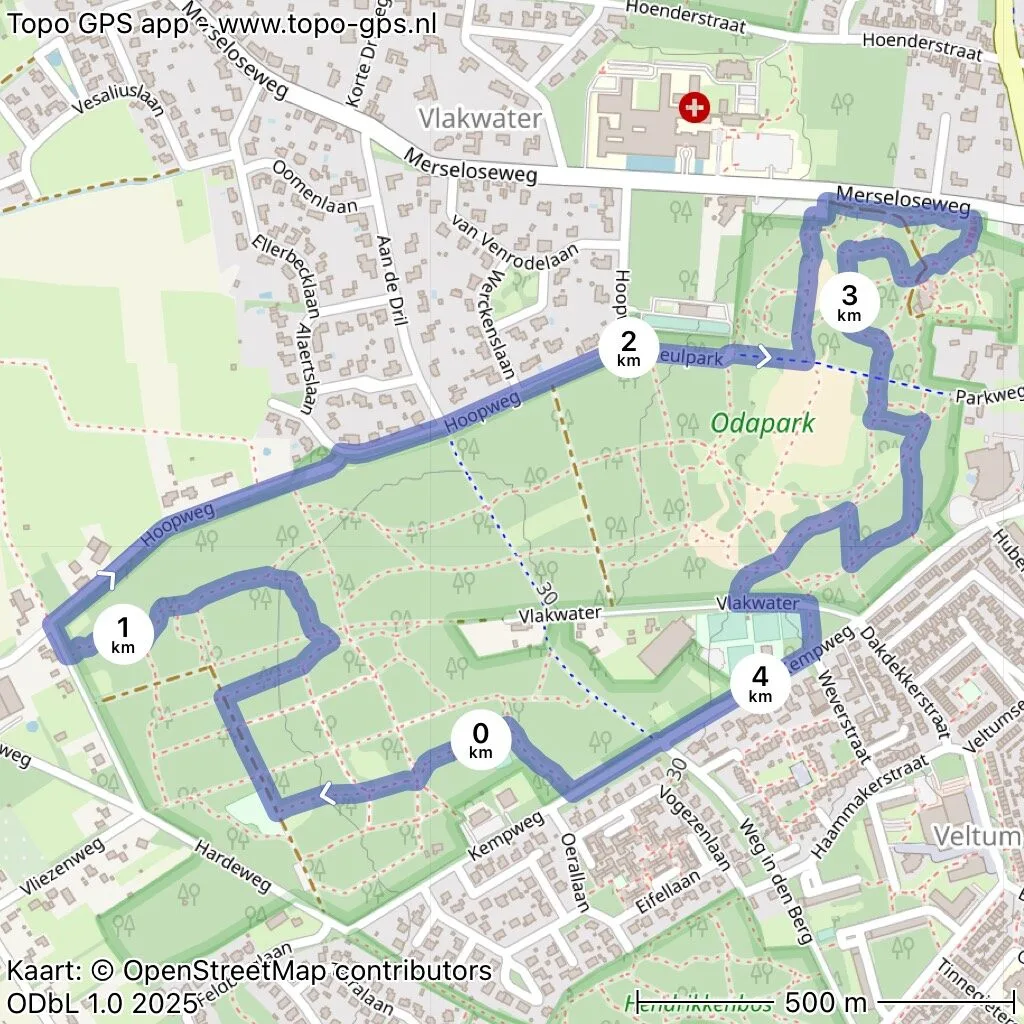 Voor de 5 kilometer wandeltocht is onderstaande route uitgezet. Deze wordt aangeduid met behulp van routepijlen.
